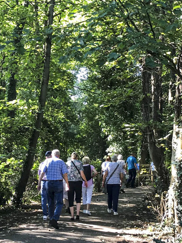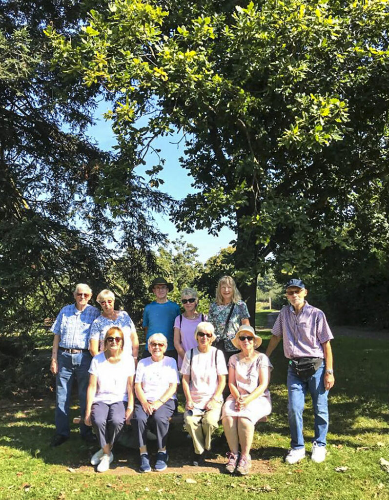 On a very hot day in early September, several group members had a pleasant amble of 3.7 km (2.5 miles), encircling Braywick Park, passing the Nature Reserve, Braywick Arboretum and even Braywick cemetery, returning north alongside ‘The Cut’. The trees kept the sun off us most of the time, it was a fortuitous aspect of this route. The amble was followed by refreshments from the cafe within Desborough Bowling Club, from where we started. My thanks to Eileen Harris for sharing her pictures.